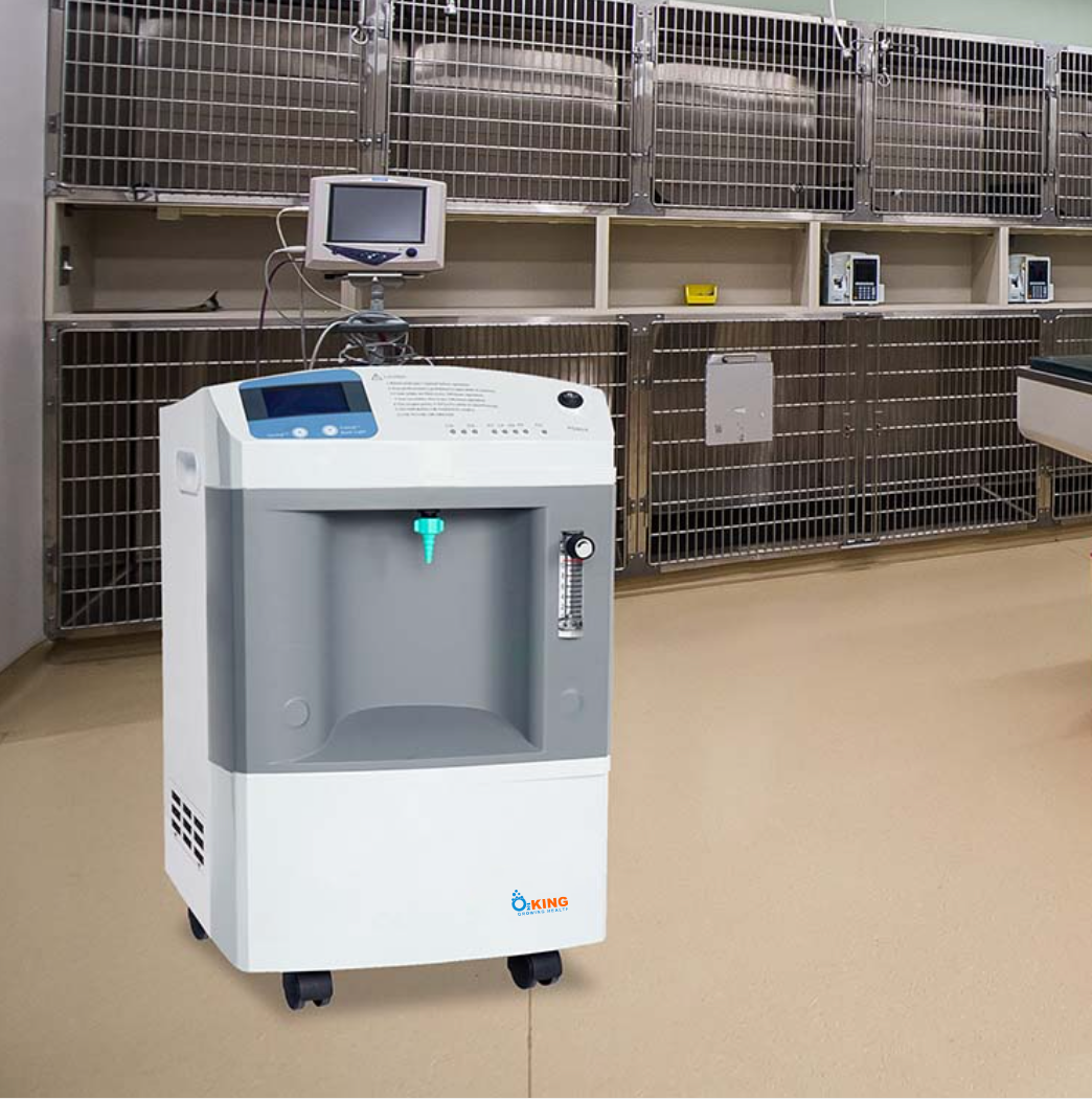 Oxygen Therapy: Animals inhale oxygen directly through a mask connected to an oxygen concentrator, effectively treating respiratory diseases